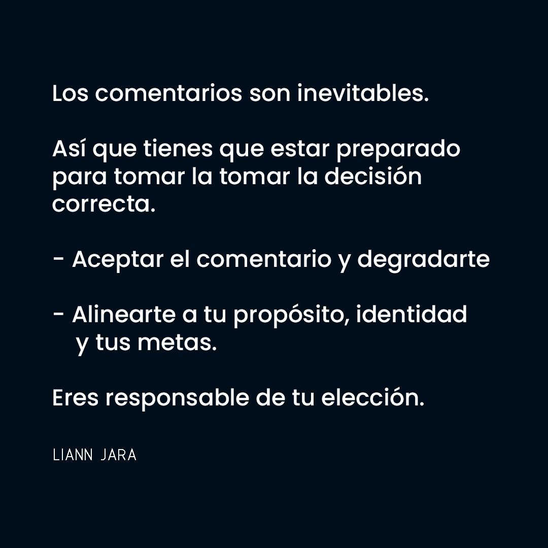 Y si no se alinea con tu propósito o los valores que te definen, no tomes su comentario.